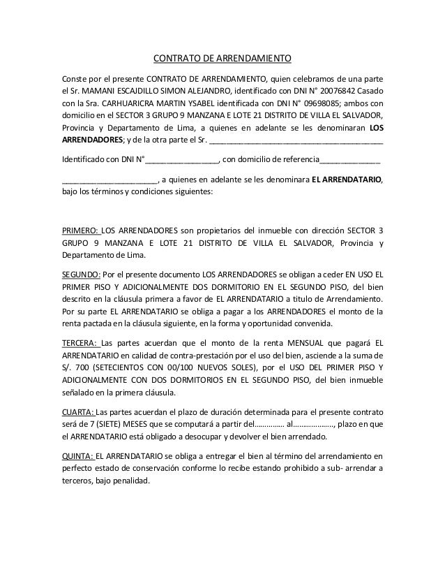 Modelo de contrato de alquiler de departamento lima peru. Ante la duda de muchos propietarios de saber cómo hacer un contrato de alquiler extra le da en calidad de exclusiva gracias al aporte del abogado walter jorge mendizábal anticona un modelo en el cual. Contrato de alquiler minidepartamento. Legalizaciones de firmas y clausula s de castigo. Y departamento de lima el mismo que se encuentra inscrito en la partida n del registro de la propiedad inmueble.