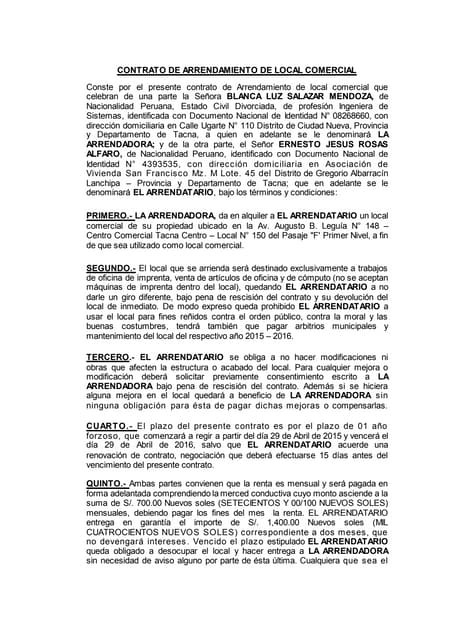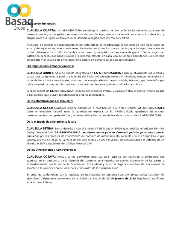 Modelo de contrato de arrendamiento peru 2019 con clausula de allanamiento. Modelo de contrato de arrendamiento o alquiler de inmueble con clausula de allanamiento futuro con firmas legalizadas notarialmente conste por el presente contrato que celebran de una parte la arrendadora. Dante barrios falcón notario de tarapoto kardex. Este proceso será posible si previamente en el contrato de arrendamiento se incluye una cláusula de allanamiento a futuro del. 7 abril 2017 16 enero 2019 por admin deja un comentario descarga el modelo de contrato arrendamiento con clausula de allanamiento futuro aquí.