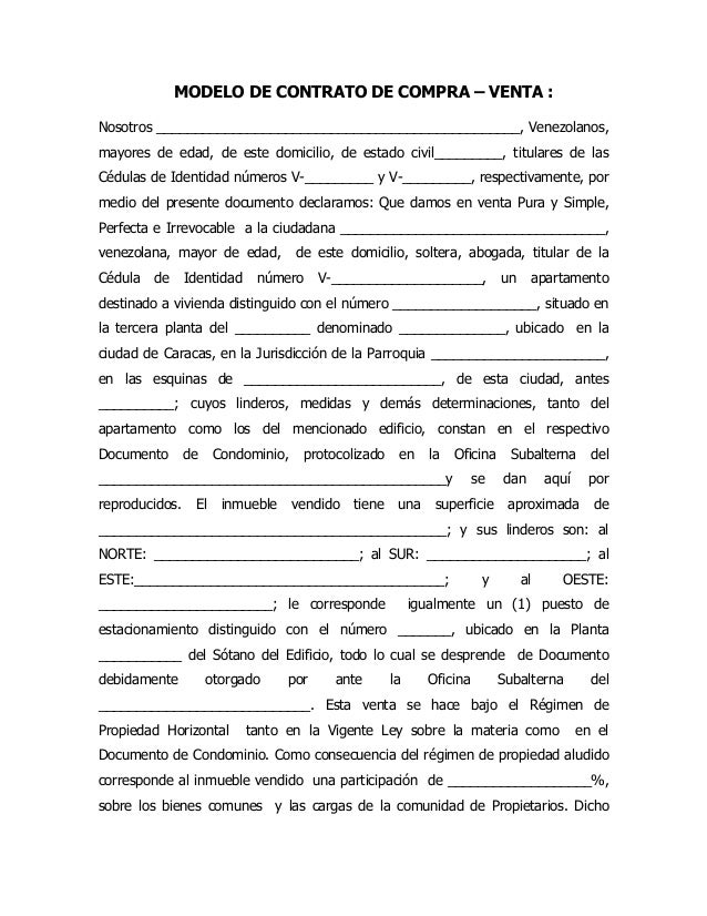 Modelo De Contrato De Compraventa De Inmueble En Venezuela