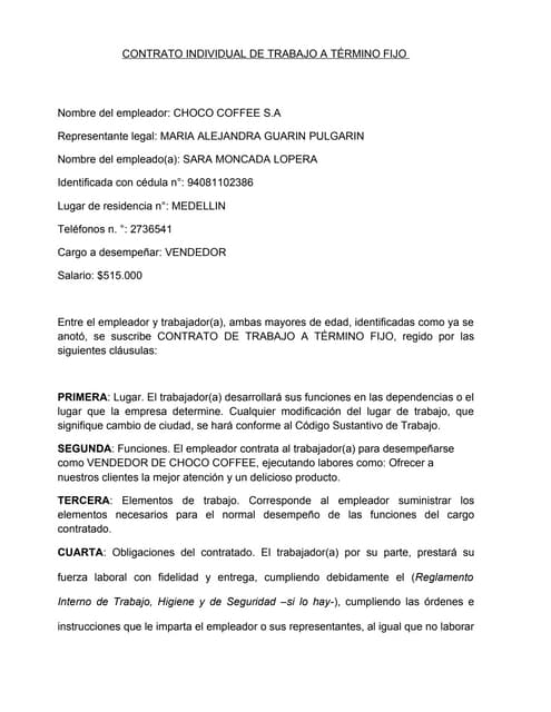 Modelo De Contrato De Trabajo Segun El Codigo Laboral Paraguayo